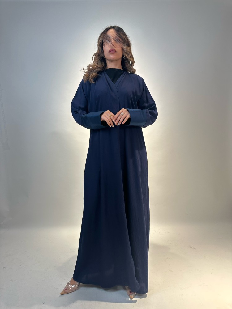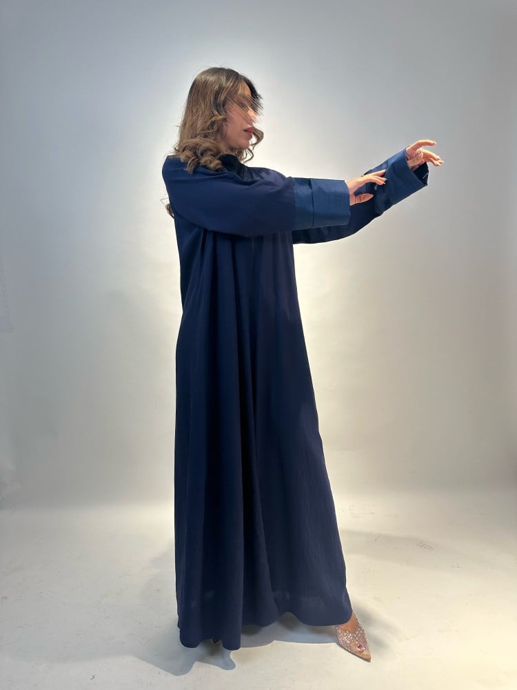 - الإضافات : تصميم عصري انيق كلاسيكي بتداخل قماش تفته شانتون ب لون أزرق.