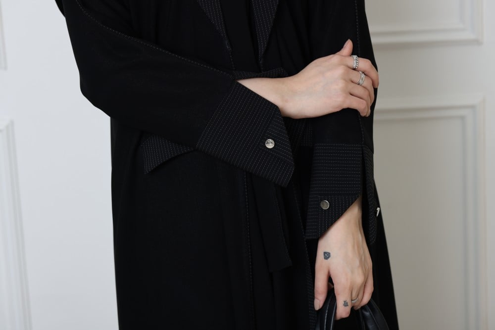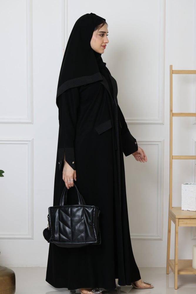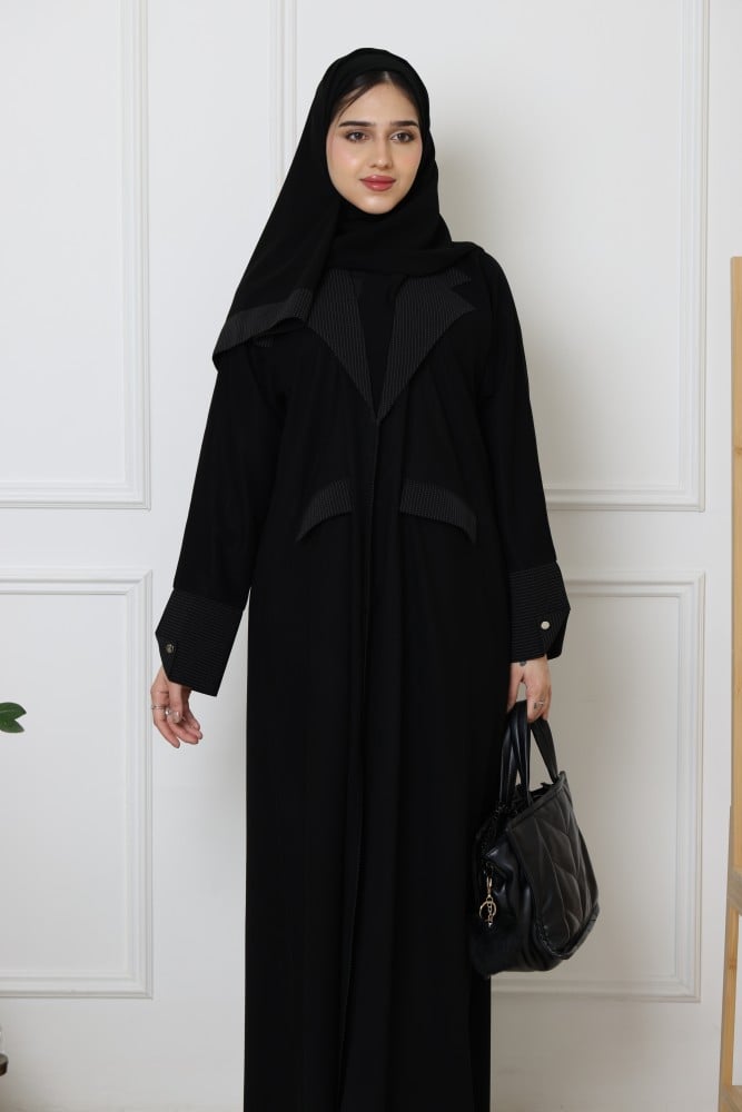 • عباية كريب ملكي تجمع بين الطابع الرسمي واللمسة العصرية بتصميم فريد يلائم العمل والاجتماعات والمناسبات الرسمية.