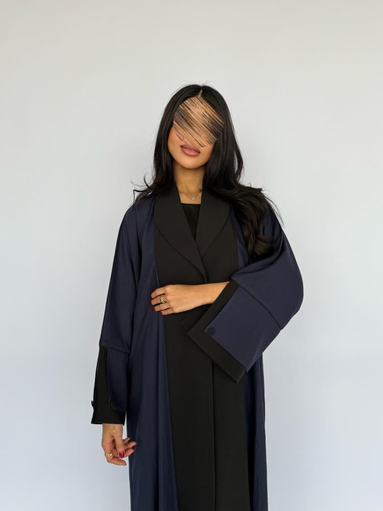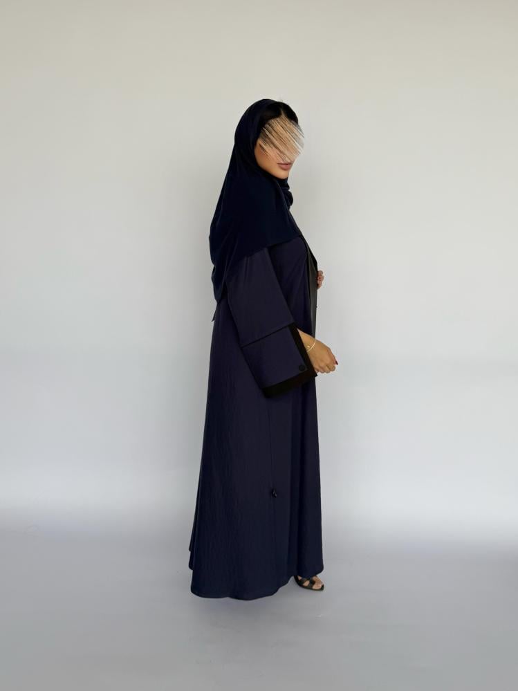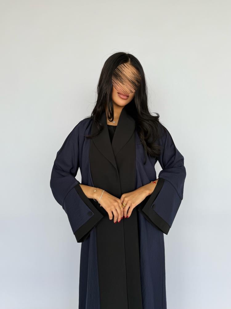 - اللون : كحلي ممزوج بتدخيلات قماش حرير مغسول ناعم جداً بلون أسود .